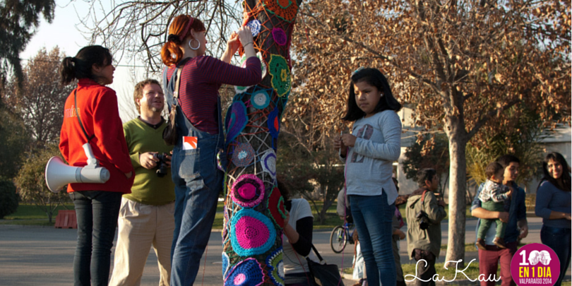 Particularmente en la Plaza Waddington se realizará la intervención Tejiendo Valpo, mediante la técnica del Yarn Bombing (eco-tejido en árboles) a cargo del colectivo de diseño La Kau. Para su realización se convoca a los vecinos y vecinas a tejer círculos de crochet y pompones de lana, de diferentes tamaños para revestir y llenar de color los árboles de la Plaza Waddington. La idea es que los tejidos sean llevados a partir de las 12 del día hasta las 5 de la tarde, y que al momento de montarlo en los árboles, se genere un espacio de comunidad y colaboración entre los asistentes.