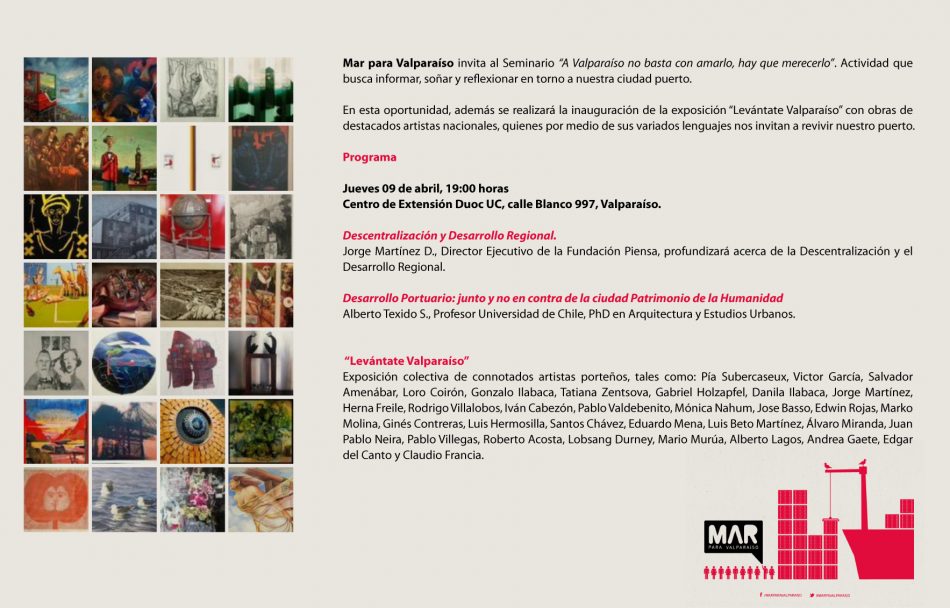Vecin@s: los invitamos a participar en este evento que nos envió el vecino Gonzalo Ilabaca: Informar, soñar y reflexionar en torno a nuestra ciudad puerto será el tema central del seminario “A Valparaíso no basta con amarlo, hay que merecerlo”, que se realizará el jueves 09 de abril, a las 19:00 hrs. en el…