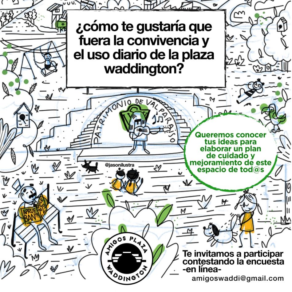 Vecin@s, l@s queremos invitar a participar en esta consulta convocada por el grupo de vecin@s «Amigos de la plaza Waddington». Este grupo nace con el propósito de trabajar en inicio en mejorar nuestra plaza, entendiéndola como un espacio pluralista y con múltiples usos, por lo mismo el completar esta breve encuesta (abierta hasta el 7…